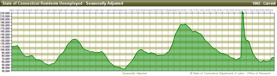| Unemployment Rate / Residents Unemployed - State of Connecticut | Last Updated: December 10th, 2025![]() |